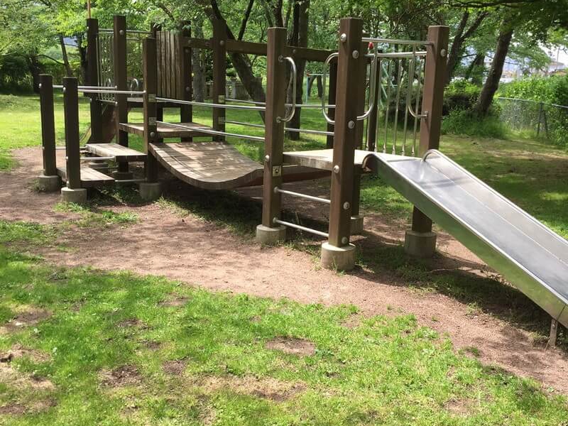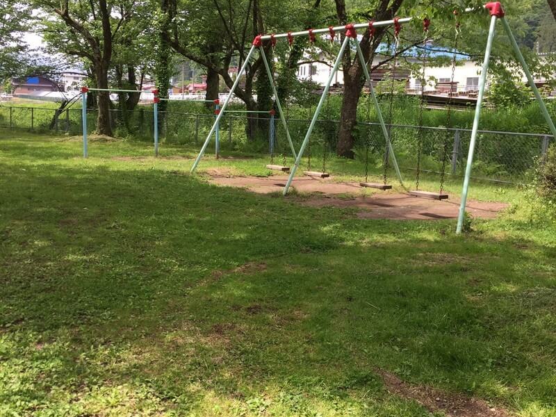 滑り台のついた遊具や鉄棒、ブランコがあり、下が土なのでこけても痛くない!木陰がたくさんあるので、子供達が遊んでいるのを見ているママには嬉しいですね。