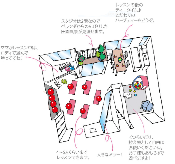 レッスン開始30分前にスタジオフリーオープンにしています。